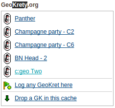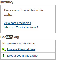 The geocaching.com website doesn’t support GeoKrety natively. However, it is possible to add the functionnality, using extending script (compatible with Firefox, Chrome, Opera Next).